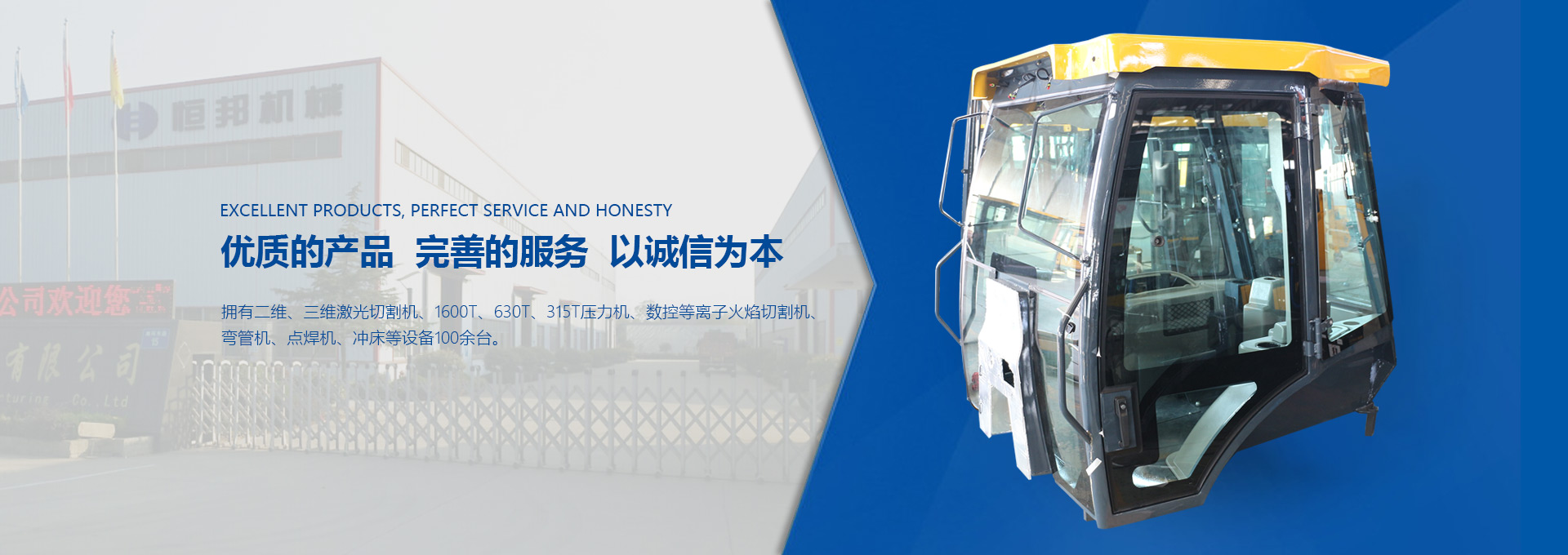 揚州市恒邦機械制造有限公司位于風景秀麗的揚州市江都區(qū)丁伙工業(yè)園區(qū)。瀕臨長江,緊靠京滬高速、啟揚高速,地理條件優(yōu)越,交通營運便利。我公司集多年模具開發(fā)和鈑金制造經驗,自2009年起,專注生產工程機械駕駛室、配重塊、覆蓋件和特種駕駛室。研發(fā)設計技術人員30名,員工300名。現(xiàn)代化生產車間20000平米。...